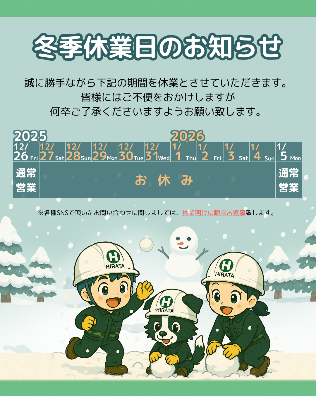 冬季休業日のお知らせ |